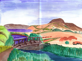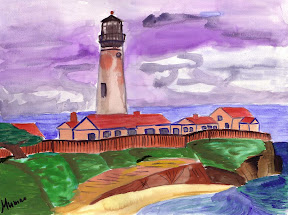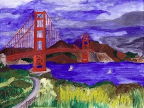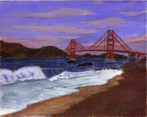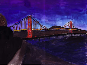 First attempt to draw the Golden Gate Bridge. The painting was done at dusk, from the Marina Beach.